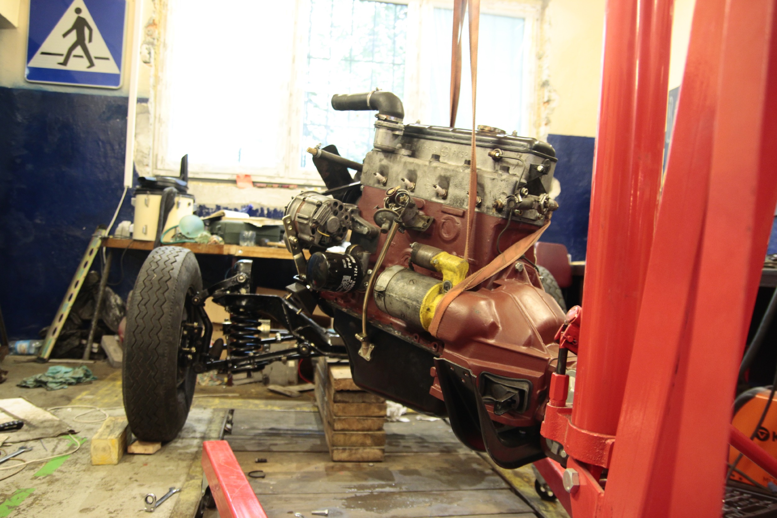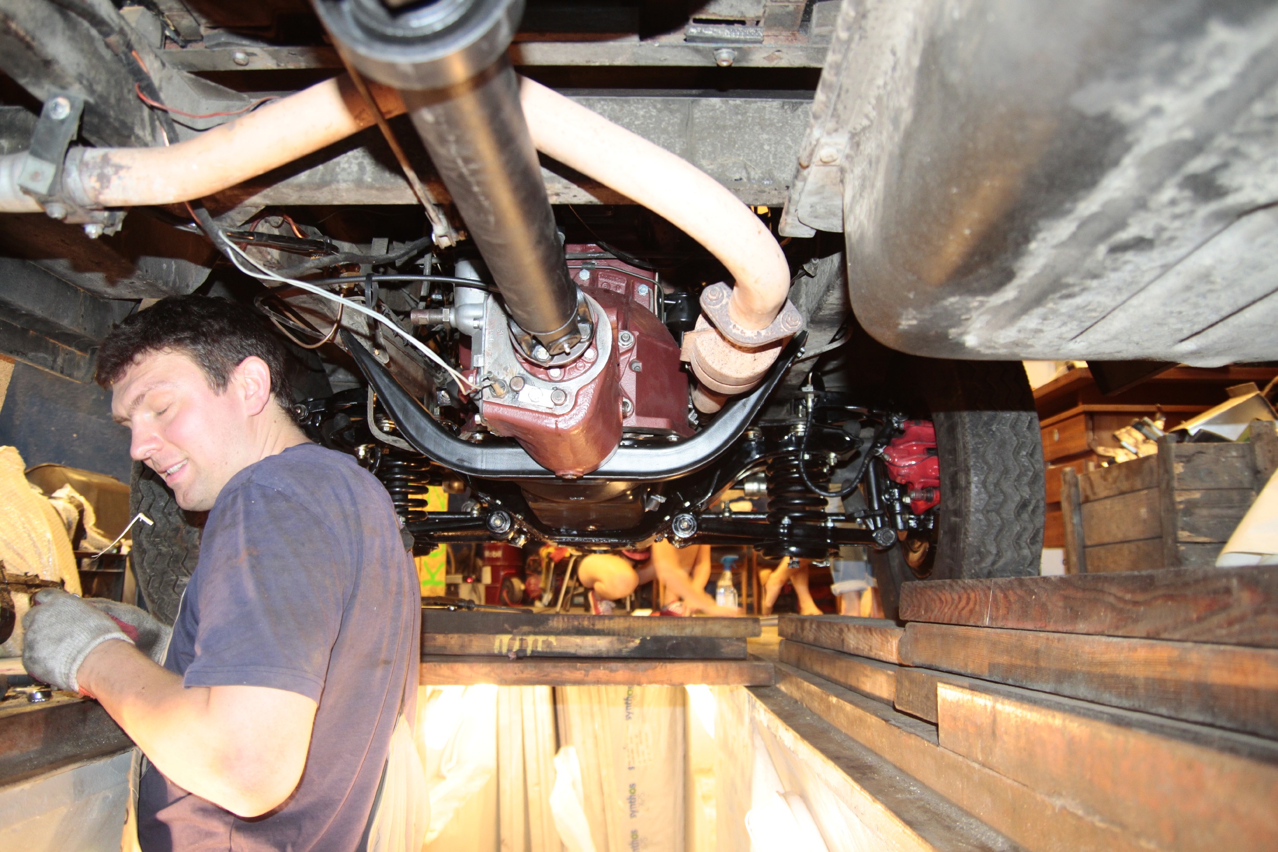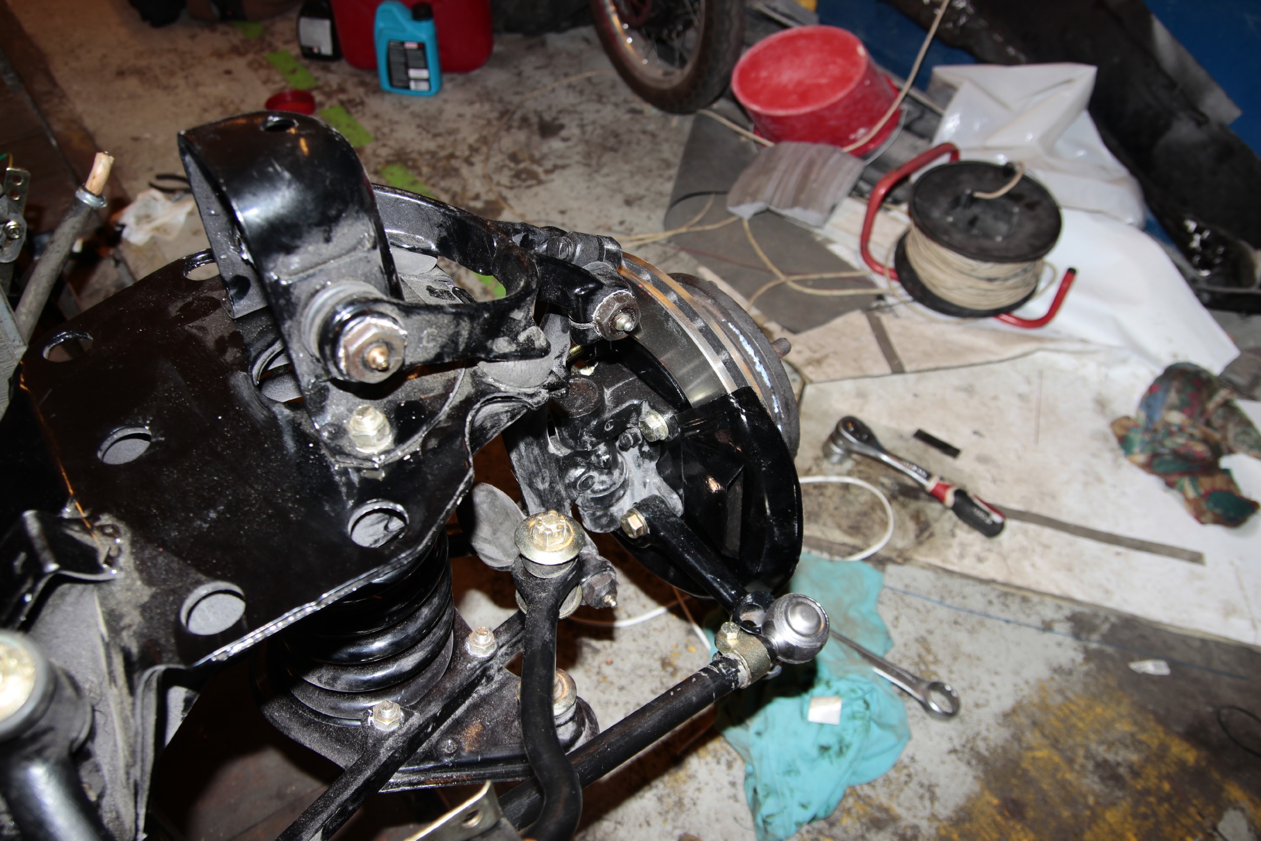 Potem zmagań ciąg dalszy był już nieco lżejszy, bo podpinanie wału napędowego, chłodnicy, całego układu chłodzenia, układu hamulcowego, kierowniczego, sterowania gaźnikiem, elektryki itd... no.. to było kolejne parę dni (popołudnia) roboty.