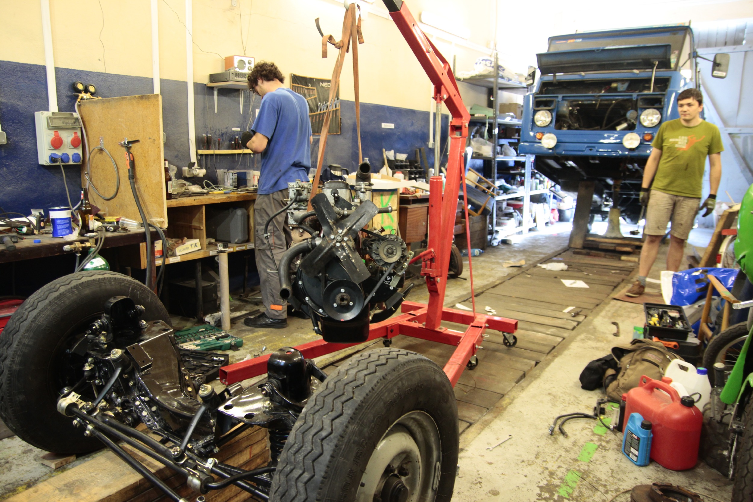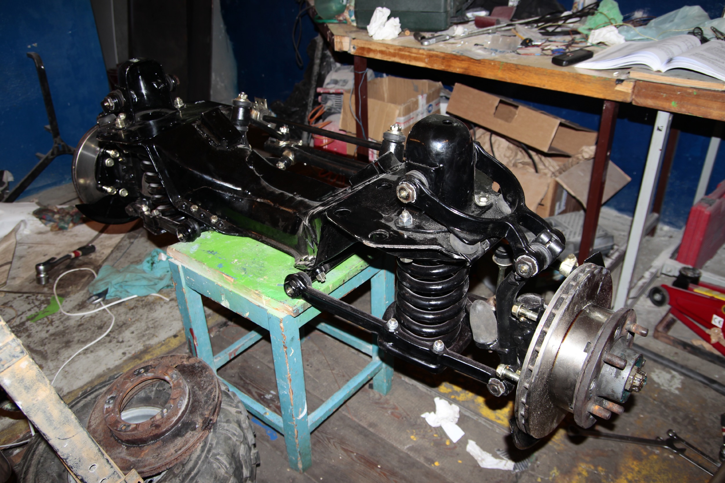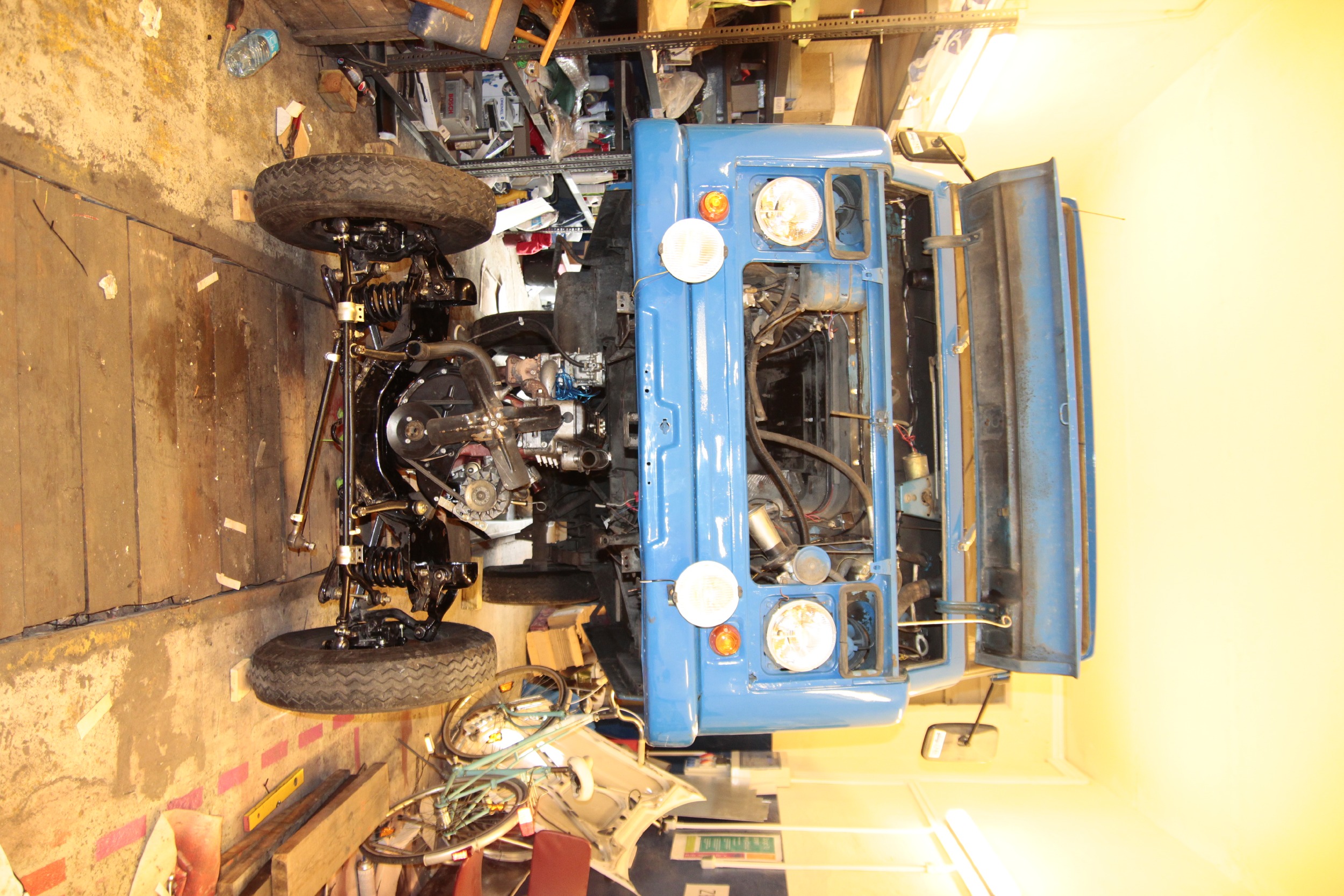 Potem zmagań ciąg dalszy był już nieco lżejszy, bo podpinanie wału napędowego, chłodnicy, całego układu chłodzenia, układu hamulcowego, kierowniczego, sterowania gaźnikiem, elektryki itd... no.. to było kolejne parę dni (popołudnia) roboty.