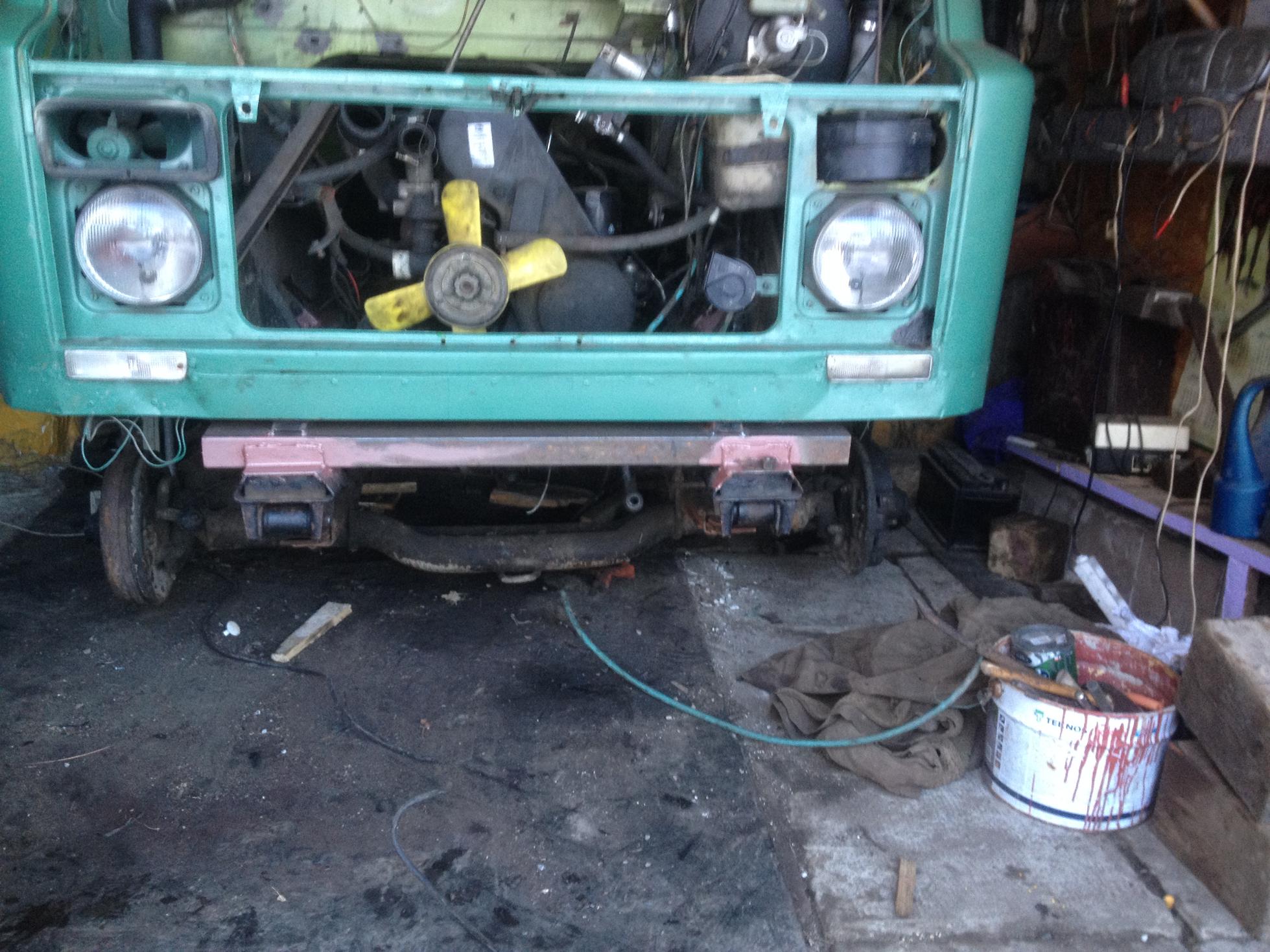 Małe uaktualnienie:) w koncu sie doczekałem,, wstepne przymiarki nowego zawieszenia, Musialem odciac od ramy stare mocowanie skrzyni biegow bo wieszaki resorow akurat tam wypadły:) Zostało ogarnąc przednie mocowania resorow.a raczej dopasowanie ich do przedniej czesci ramy zuka:) Oś kupilem wraz z kawalkiem ramy tarpana aby odzyskac mocowania resorow i sie to udało:)