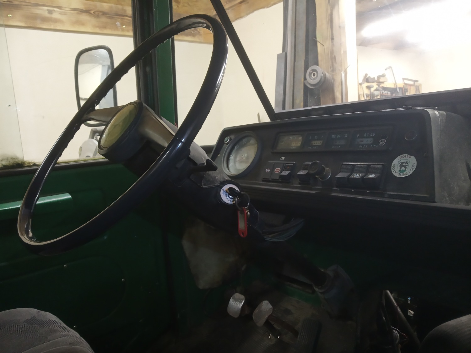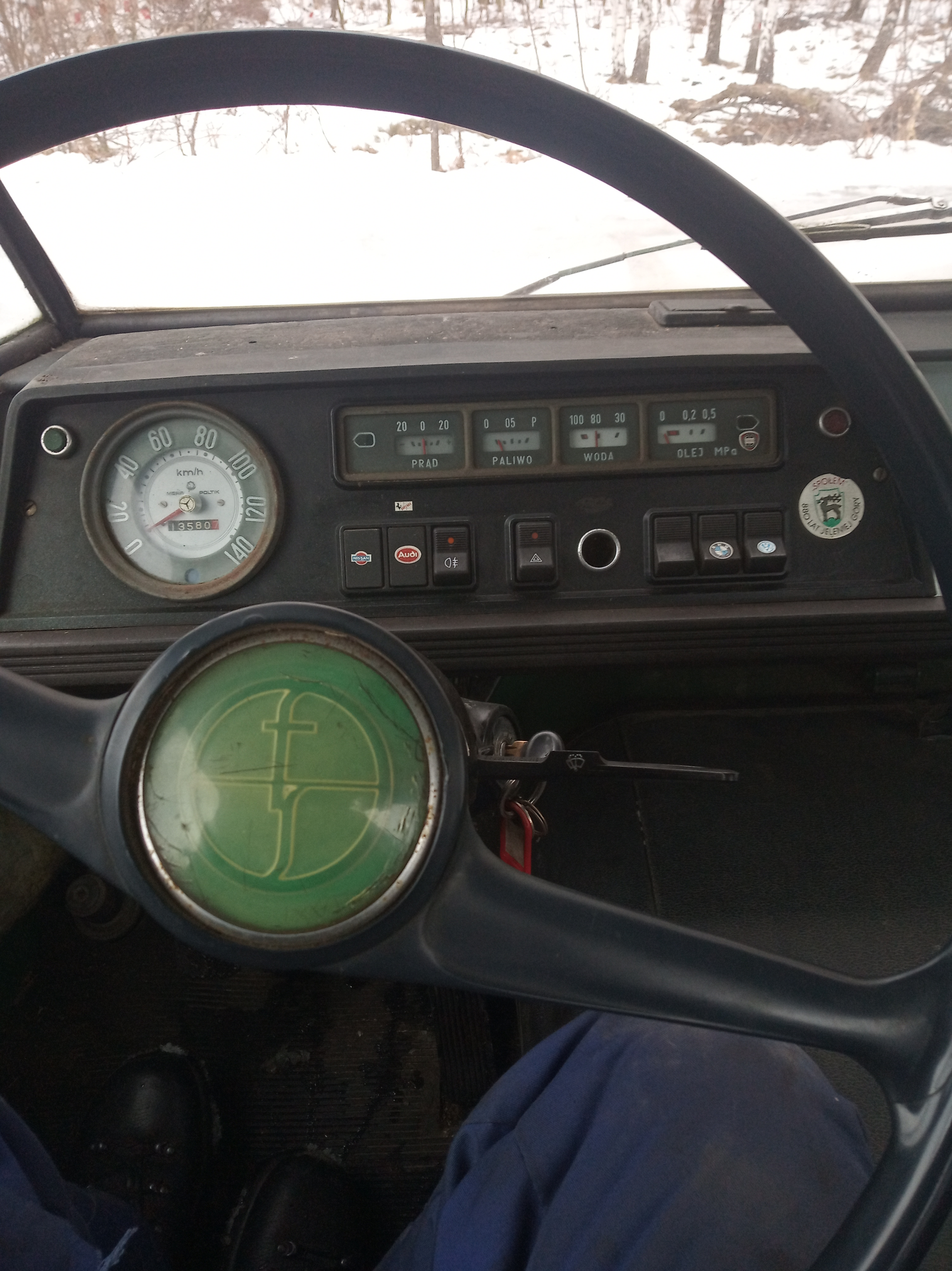 Po spłukaniu z niego mchu, odkurzeniu futra z foteli, wywaleniu zgniłych i omszałych pozostałości po płycie na pace uruchomiłem w nim kompletną elektrykę za wyjątkiem: jednej dmuchawy, którą musze wymienić, wskaźnika paliwa (pływak rozwalony), wskaźnik temperatury wody i ciśnienia też głupoty pokazują. Czas i na to przyjdzie. Następnie zabrałem się za czyszczenie zbiornika paliwa, bo mimo, że nowy to syf na dnie zapychał przepływ. Przeczyściłem, zalałem świeżym paliwem, zmontowałem, wyczyściłem aparat zapłonowy, wyczyściłem kanał przyspieszacza w gaźniku, podregulowałem lekko i jedzie jak zły. Hamulce zostały przejrzane, cylinderki wymieniłem na "nowe" leżaki magazynowe, zastane tak, że trudno było tłoczki wyjąć nawet przy użyciu kompresora. Wszystko złożone na nowo na pastę Ate, myślę, że posłuży, potestuję jak bardzo złe są te cylinderki z regulacją. Na razie muszę zmienić szczęki, bo te zalane były płynem z poprzednich cylinderków, ale na ten moment staje dęba, hamuje super, ale też na pusto on lekki, kołami mieli, aż trudno ruszyć na żwirze