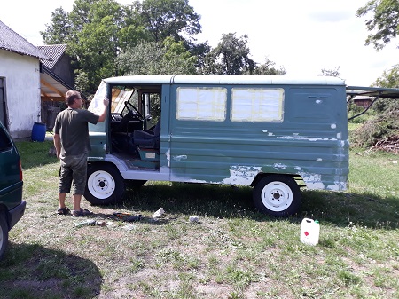 Chciałem zaprezentować wam naszego Żuka. Mój tata kupił go 2 lata temu U gościa, który wykupił go od zakładu lini kolejowych. Odrazu po zakupie wzięliśmy się do roboty. Najpierw wzięliśmy tablice tymczasowe ( początek dzisiejszych problemów z jego rejestracją) by dowiedzieć sie co jest do roboty. Okazało się, że cała przednia belka do wymiany, światła do roboty tylna belka a dokładnie amortyzatory no i blacharka. Po zrobieniu połowy tych rzeczy ponownie wzięliśmy tablice i pojechaliśmy na przegląd oczywiście diagnosta znalazł kolejne tysiąc rzeczy, więc przez zimę i wiosnę wzięliśmy się do roboty. Podczas naszych prac wyszło że pompa wtryskowa jest do renowacji oraz w niektórych miejscach jest zapocony. Następnie go pomalowaliśmy. Dziś skończyłem pracę nad światłami. W dniu dzisiejszym do zrobienia jest Wnętrze, pompa wtryskowa, usunięcie zapoconych miejsc, uszczelnienie chłodnicy no i rzeczy typowo kosmetyczne takie jak np chlapacze. Jednak największą trudnością jest jego zarejestrowanie a to przez to że dwa razy wzięliśmy Tablice tymczasowe. Sprawa utknęła w cepiku i czekamy co dalej