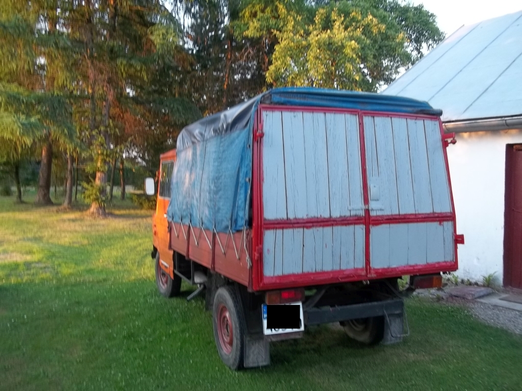 Wozi materiały budowlane, czasem "powietrze", kiedy chcę się po prostu nim przejechać. Trochę doprowadziłem go do porządku, powymieniałem wszystkie płyny. Pomalowałem też tylne drzwi, bo te odrapane deski odstraszały. Dobór kolorów był dość przypadkowy, to, co akurat znalazło się pod ręką, w dodatku taśma malarska "podciekła" i wyszły zacieki. Ale to nie problem, i tak w planach są nowe drzwi.
