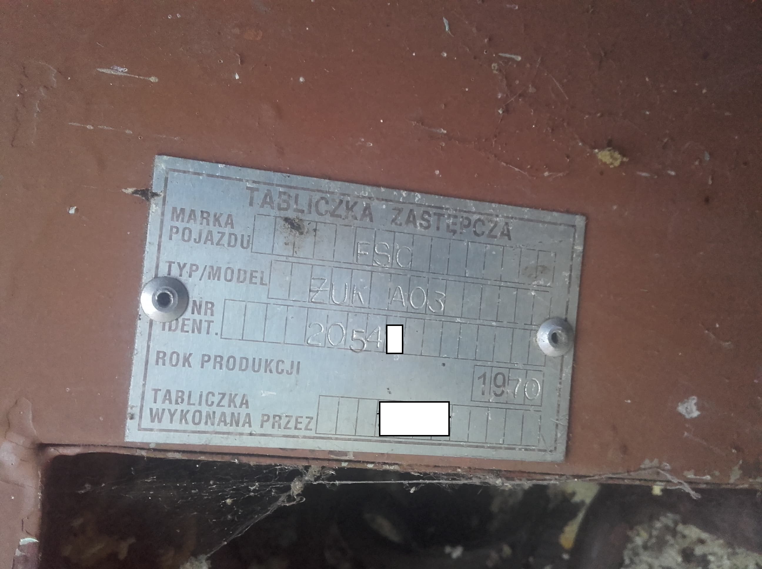Przesłałem zdjęcie tabliczki, jest na pewno przed 2000 bo wtedy było jeszcze 49 województw, pochodzi z suwalskiego. Dwa na syrenie mam podobny przypadek, numer ramy wskazuję 65 rok, a jest z 74 roku. Facet dostał nowa rame i dali mu nowy numer gdzieś na stacji nabity, może x tym żukiem to samo się wydarzyło? Nie wiem i chyba się nie dowiem