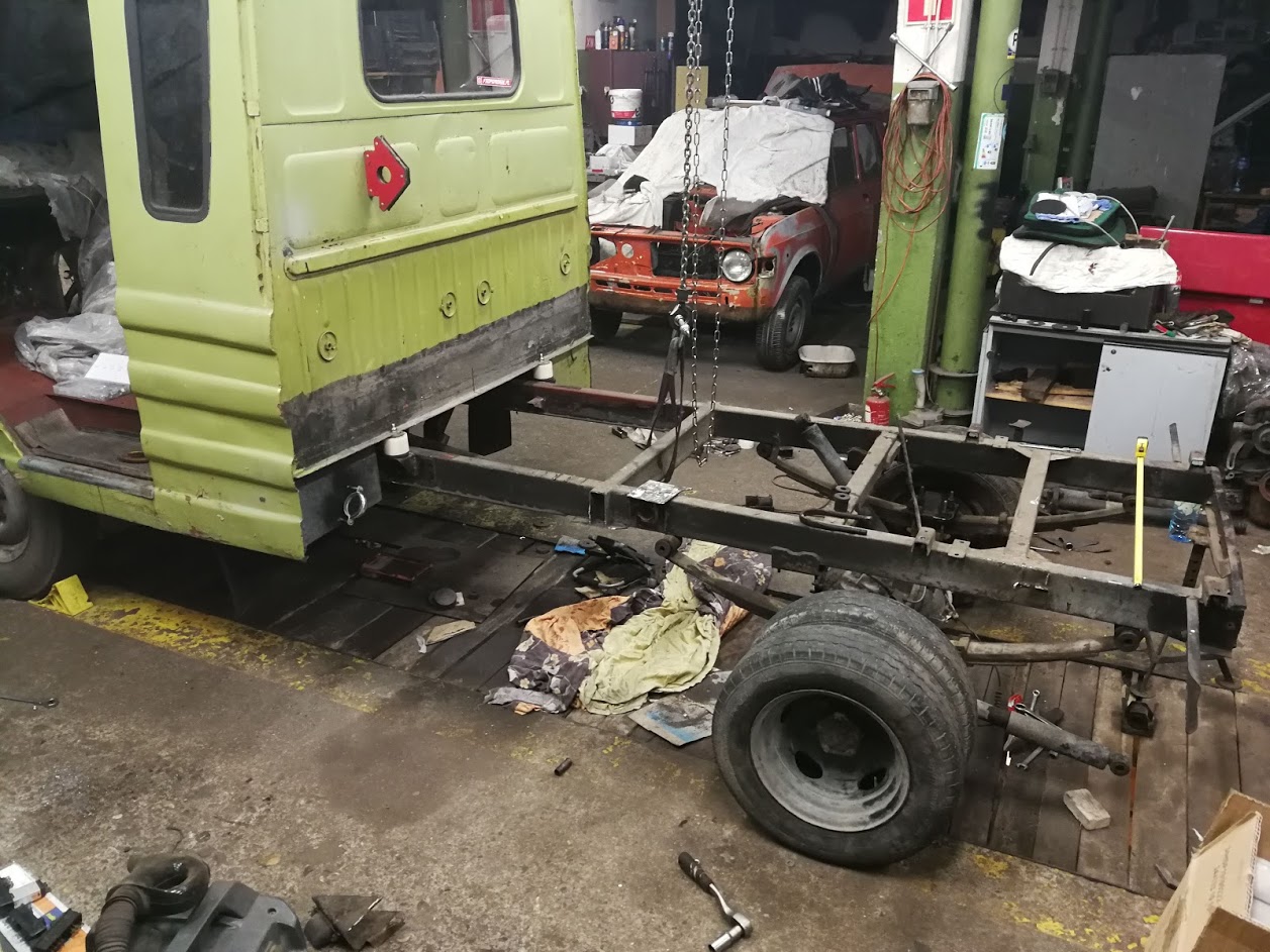 Mała aktualizacja, kabina ściągnięta, paka ściągnięta, rama doprowadzona do porządku. Cała paka nadaję się tylko na śmietnik, kompletnie zgniła konstrukcja. Cała trzymała się tak właściwie na 3 gwoździach i jednej śrubie m6.