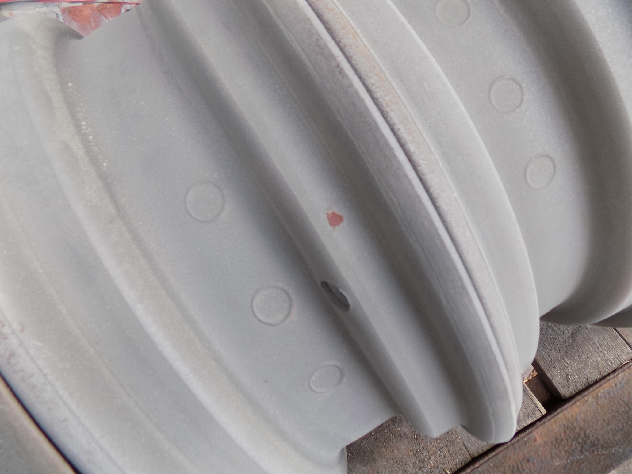 Oglądam je, a tutaj "reklamacja nadaje się do reklamacji". Coś tam więcej wyczyszczone ale dalej pełno niedoróbek. Oczywiście po dłuższej chwili spotyka mnie stary Florczyk i burczy, co ja mu tam łażę i czego szukam. Wreszcie spotykam tego robotnika, co to piaskował, a on wytłumaczył mi, że: