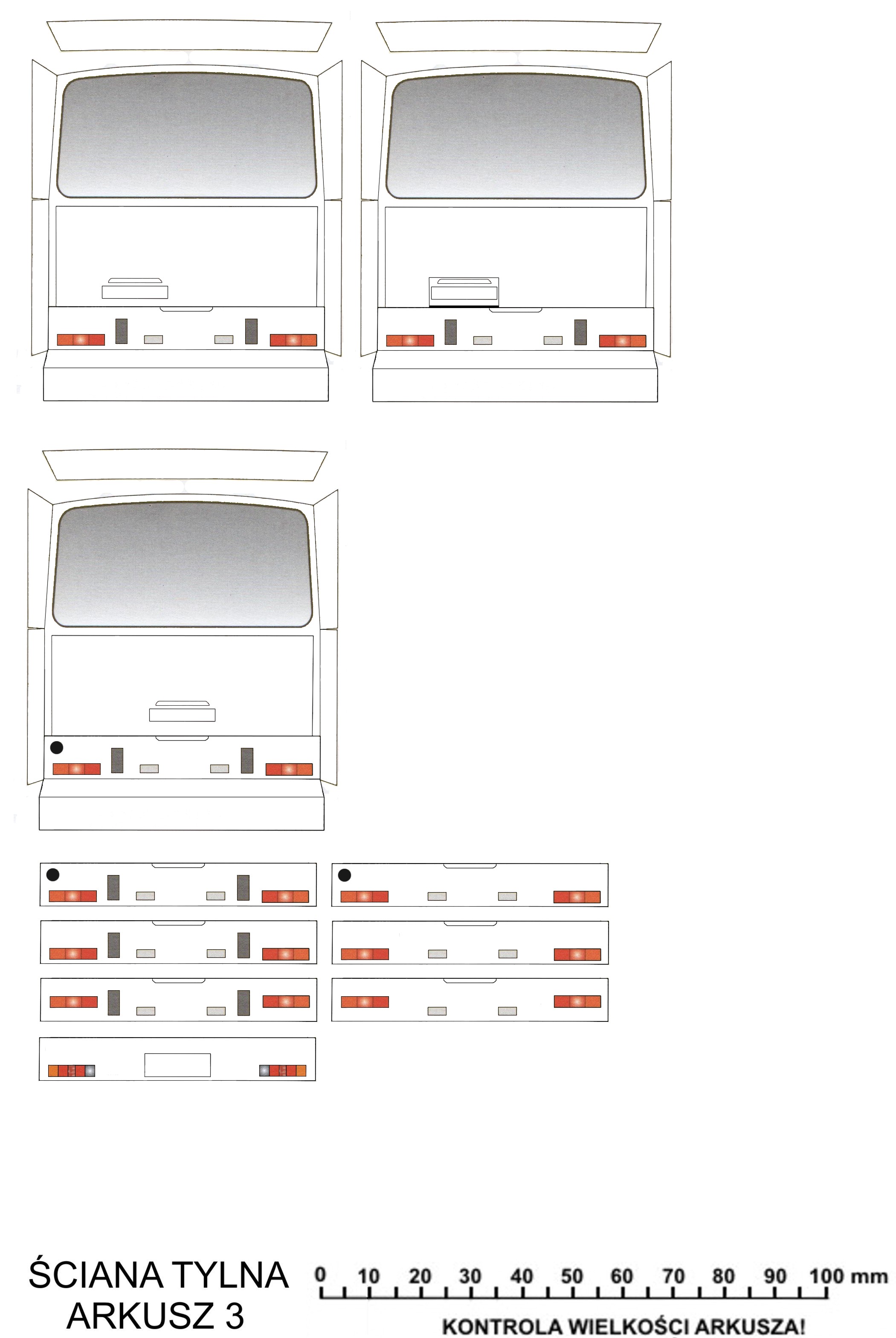 Ściana tylna - tutaj już trochę posiedziałem nad nią merytorycznie - wykonałem aż 7 możliwych (znanych mi "z natury") wariantów tylnego zderzaka - od zderzaka z Pr 110 po "zmodernizowany" zderzak z Jelcza T120 z końca lat 90-tych (mam taki oryginalny i powinien być on kompatybilny z karoserią od Pr 110 Lux) Podobnie z klapą od silnika - macie też kilka "możliwych w przyrodzie" wariantów... czyli jest aż 21 możliwych wariantów samego zadka tego modelu!!!
