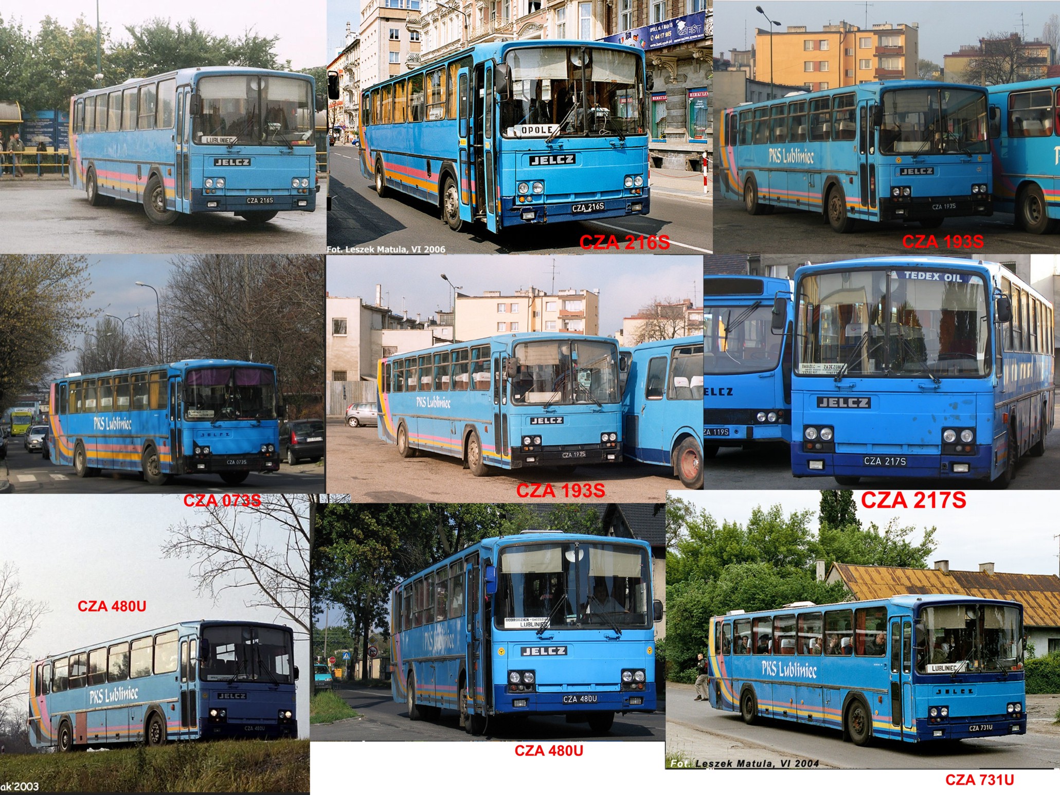Zestawienie zdjęć wszystkich Jelczy Pr 110 D / Lux z taboru PKS Lubliniec - o których mi wiadomo, że takie o takich numerach istniały i których zdjęcia znalazłem na stronie "phototrans" - według tej bazy, PKS Lubliniec posiadał 6 egzemplarzy takiego Jelcza: