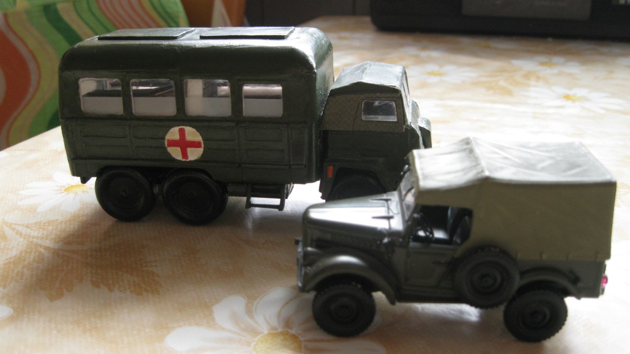 Szpital polowy - konwersja "ciastowni" jaką wydał w 2006 roku "MODELIK". Przeskalowałem model do skali 1:43 i świetnie teraz pasuje do tych GAZ-ów 69 8) :D