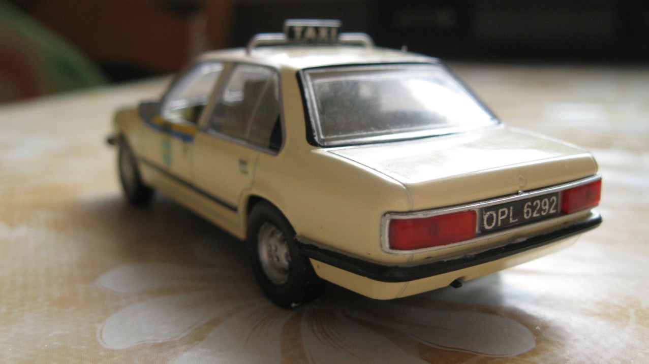 Może ktoś mi zarzuci, że "poszedłem po najmniejszej linii oporu", ale ten kolor mi idealnie pasował. Nie wiem dlaczego, ale ten model "ma to coś" - aż do natrętności kojarzy mi się z opolską starówką z czasów przed powodzią 1997 roku. Detale wymyśliłem - fakt, ale gdzieś na bank widziałem podobne auto w podobnym kolorze w tym czasie. Może okolice placu katedralnego, ulicy Książąt Opolskich, lub mojego uniwerku... Jak tylko zobaczyłem w serii amercomu tą taksówkę, to z miejsca podjąłem decyzję Opel będzie z Opola :wink: 8)