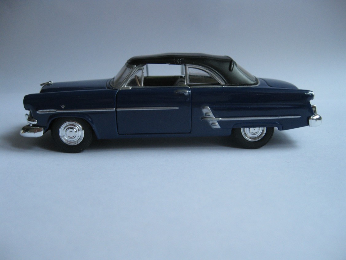 ...teraz może pora zaprezentować największego chyba "rywala" Chevroleta i Cadillaca na amerykańskim rynku... czyli Forda Ford Crestline Sunliner z 1953 roku... Podobnie jak poprzednie kabriolety jest to produkt Welly i z tej samej serii... Obie wersje - z dachem i bez. Mój jak widać ma dach "rozłożony"... PS - wnętrze sam malowałem