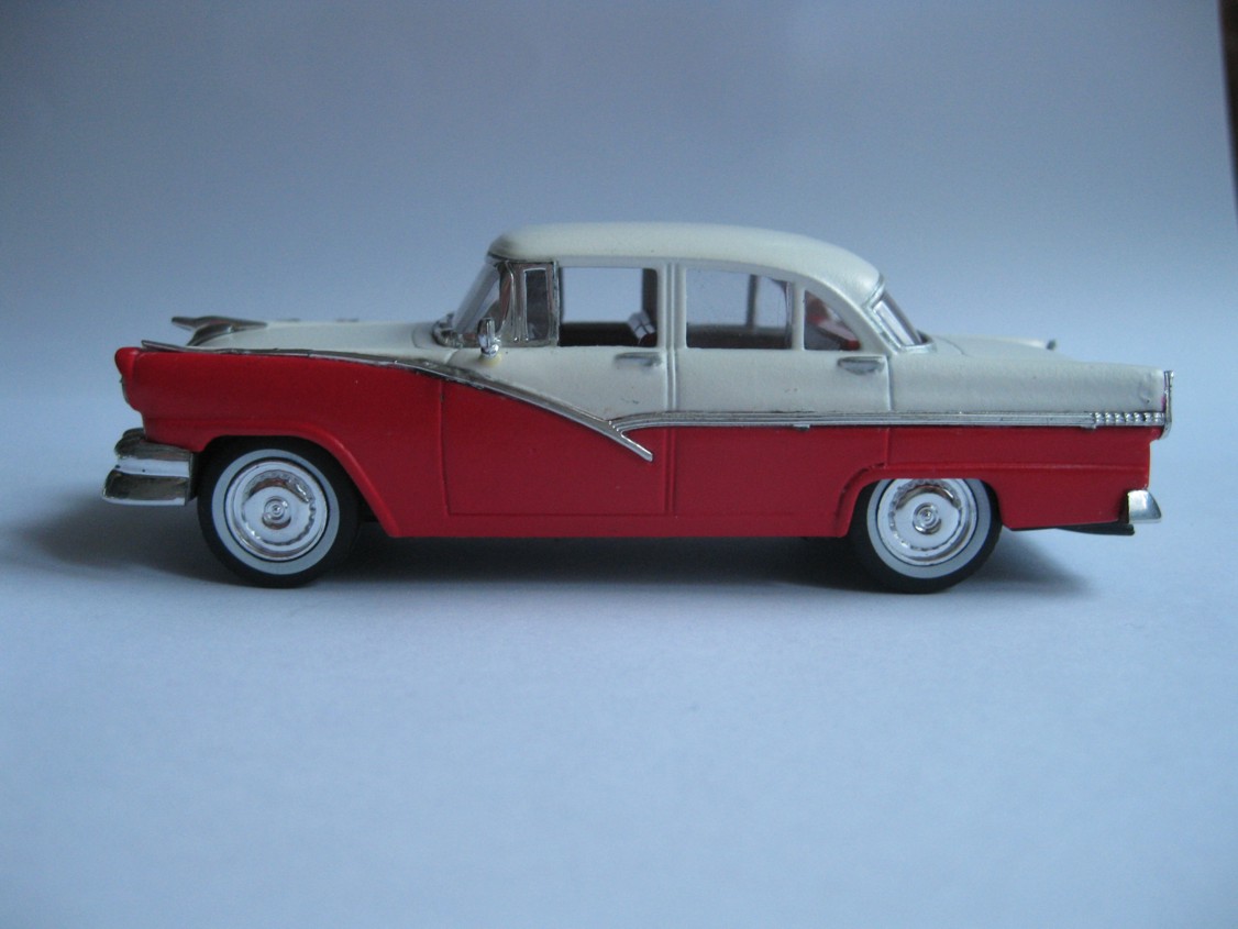 kolejnym "starym amerykańskim Fordem" wartym polecenia, który pojawił się na polskim rynku modelarskim jest Ford Crown Victoria vel Ford Fairlane w wersji coupe z 1956 roku... Pojawił się on parę lat temu w kolekcji "Legendarne samochody" wydanej przez Amercom... Model wart polecenia - dużo metalizowanych elementów, dach ze specjalnym szyberdachem z półprzezroczystego plastiku... Poziom tego akurat modelu według mnie jest wyższy od poziomu wykonania przeciętnego modelu z "Kultowych aut PRL"...
