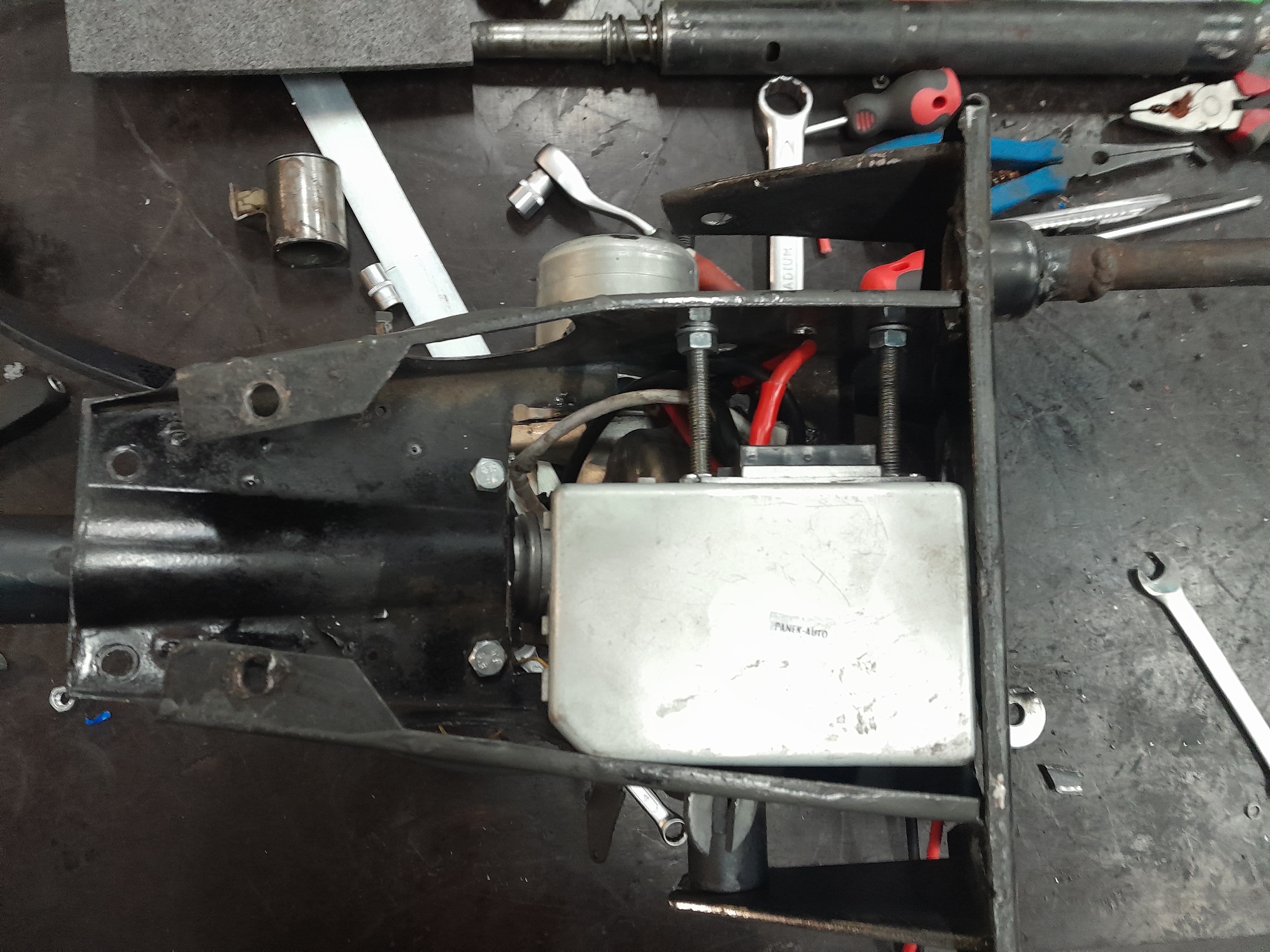 W środku jest jeszcze miejsce na śrubę mocującą uchwyt serwa pod maską, gródź, oraz pedaliere. U mnie od wewnątrz przyspawana nakrętka m8, później nie będzie już tam dostępu, widać ja na jednym z poprzednich zdjęć.