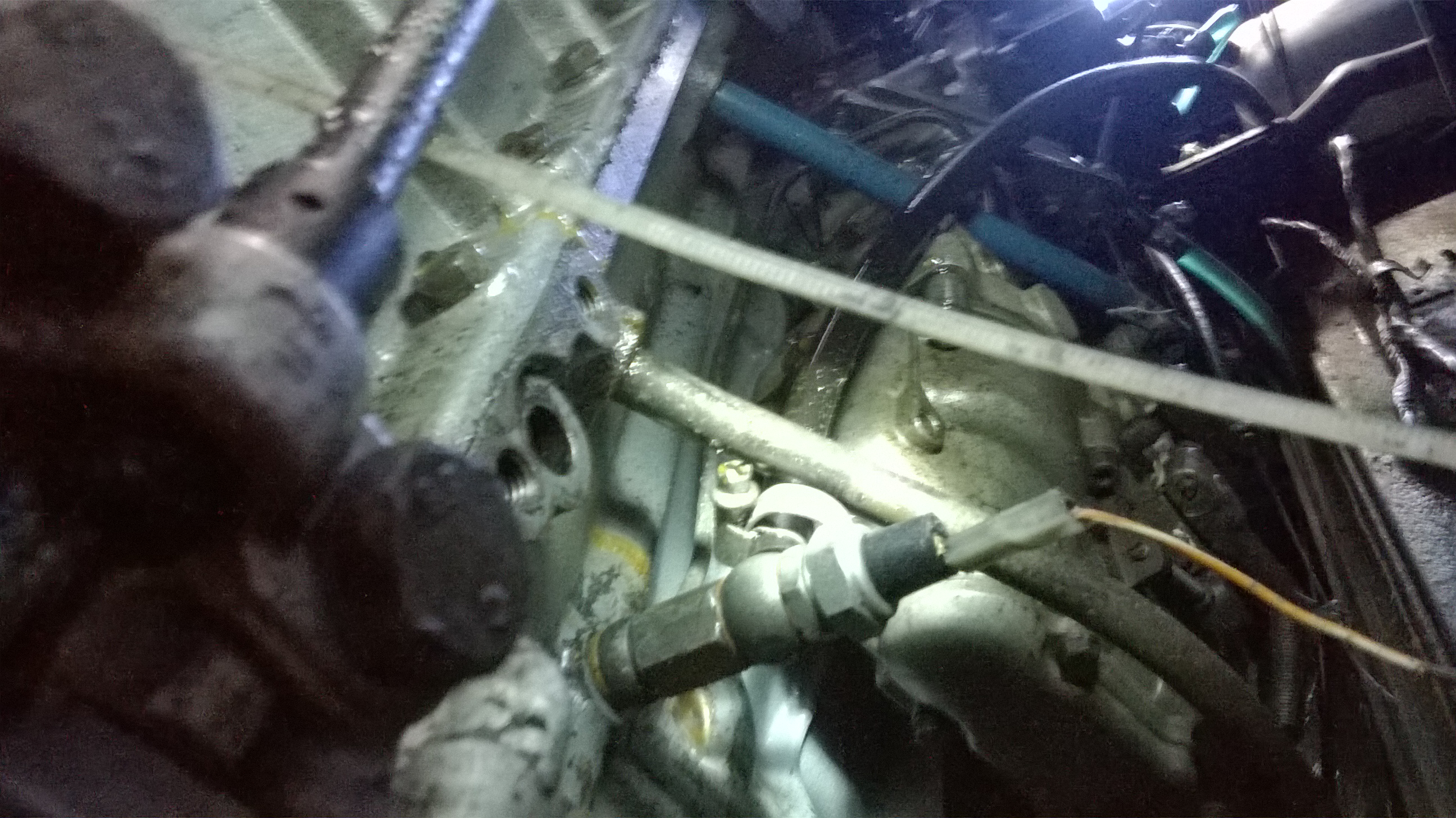 Przy silniku, jak mówiłem, mam wykręcony czujnik na wskaźnik i w jego miejsce zrobiony trójnik z czujnikiem na kontrolkę i wyjściem na wskaźnik.Potrzebujesz takiego czegoś