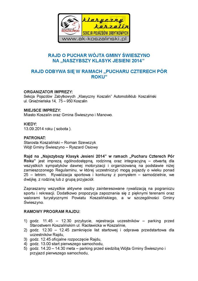 Zapraszam na rajd klasyków na wybrzeżu. Fajna rodzinna impreza o charakterze rajdu na orientację-z pilotem. Szybkość naszych bolidów nie jest najważniejsza.