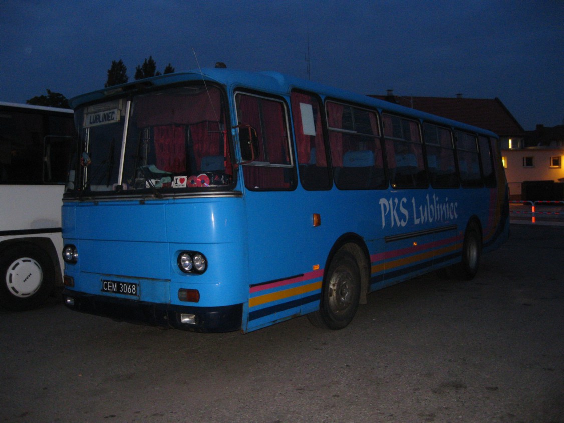 Komentarz: CZA 011S - jeden z najstarszych wozów w PKS Lubliniec (chyba z 1984 roku). To że jest zrobiony bardzo niechlujnie, to już widać na pierwszy rzut oka, ale po obfotografowaniu go ze wszystkich stron, widać, że oba boki są niesymetrycznie zrobione! Z jednej strony jest z tyłu okno, z drugiej nie!