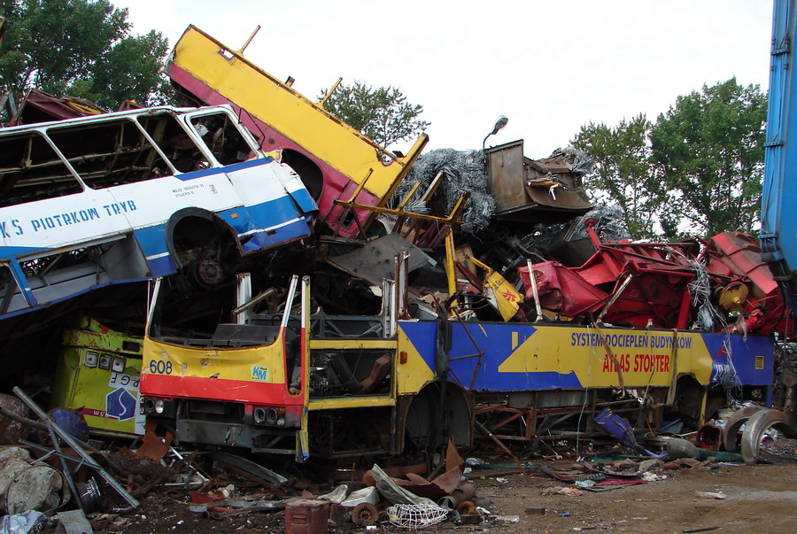 ...choć pewnie wśród tych maszyn ze zdjęć powyżej znalazły się też takie, które były całkiem w dobrym stanie, ale jakiś debil miał za dużo kasy, wolał gminę/miasto zadłużyć na nowy tabor i wolał całkiem zdrowy wóz "uśmiercić"...