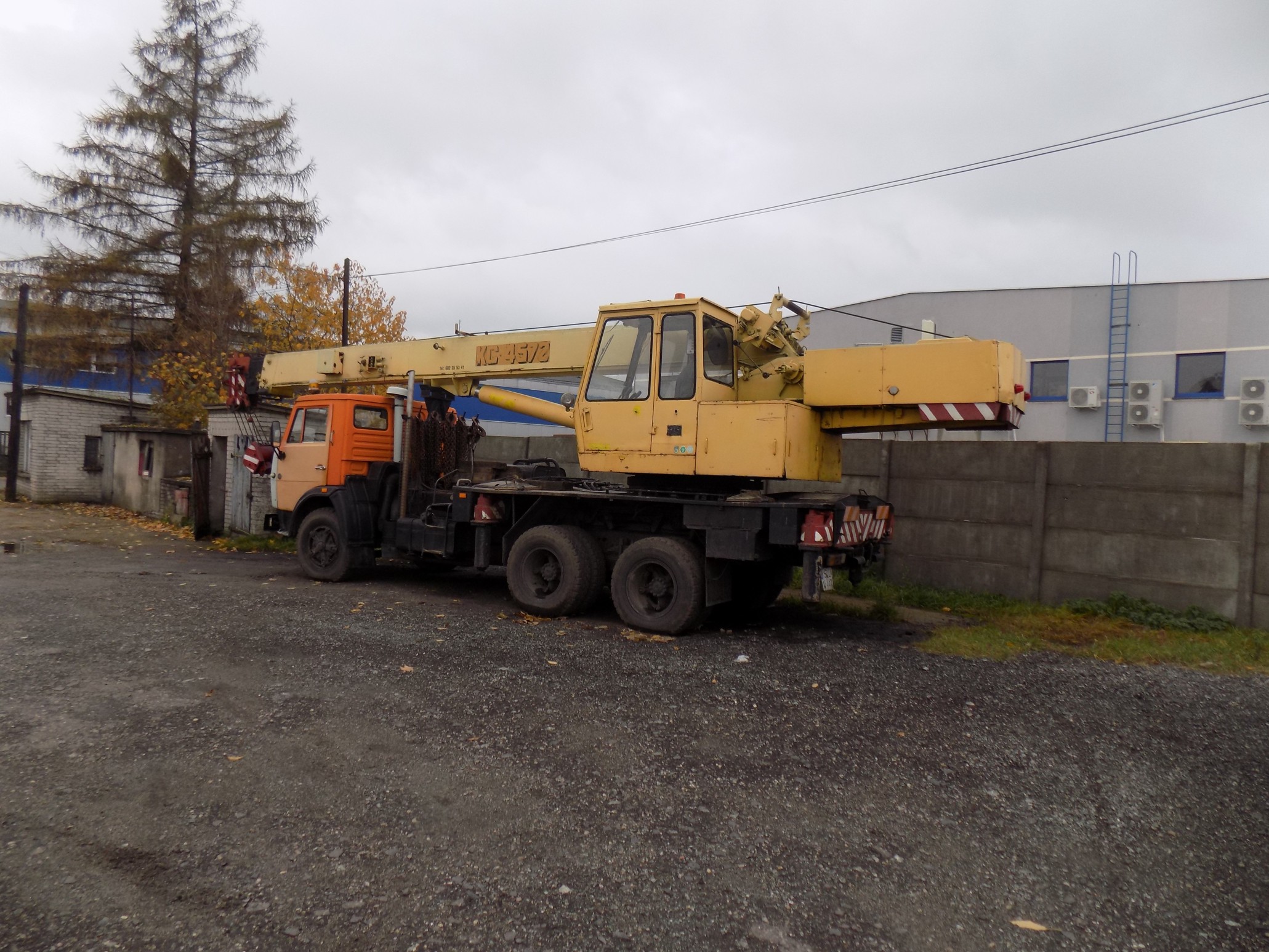 Na placu stoi dźwig Kamaz w oczekiwaniu na kolejną robotę (można go sobie wynająć "ot tak")