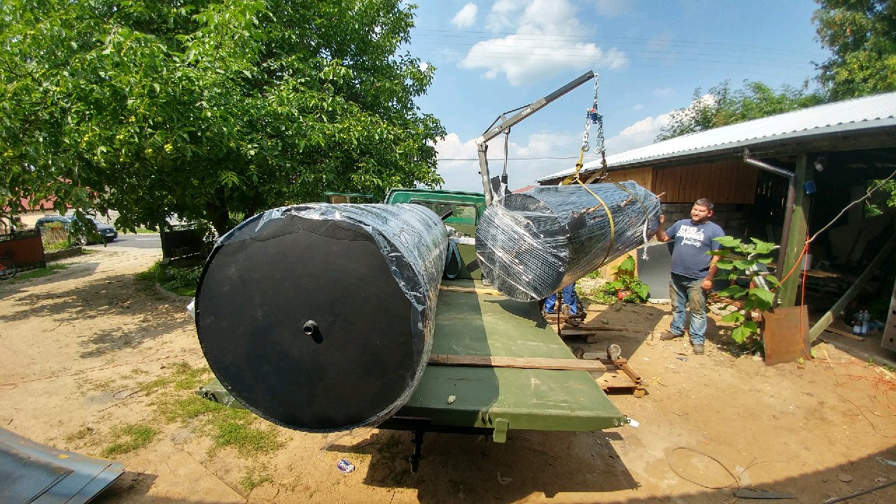 Załadowałem 2 bufory po 1200 l z blachy 4 mm - w 1 dwie wężownice- w Górze nad Notecią, i dowiozłem pod stolicę. Będą instalowane w domu opalanym drewnem i pelletem.