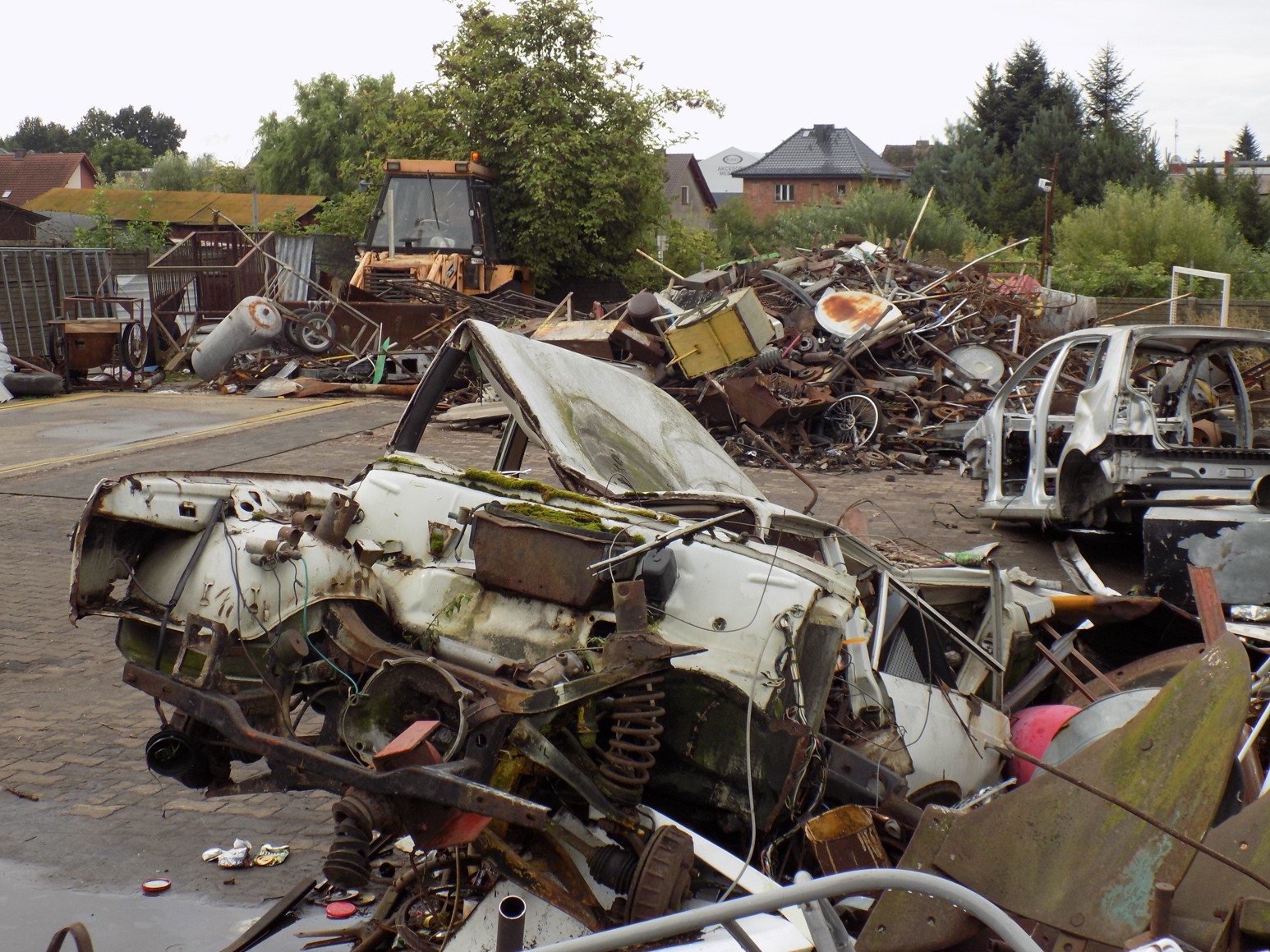 Wartbi 353 na chwilę przed zasypaniem stertą złomu z przyczepy z kiperem.